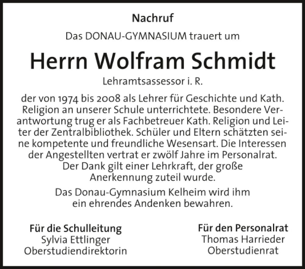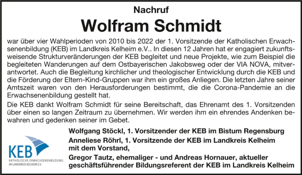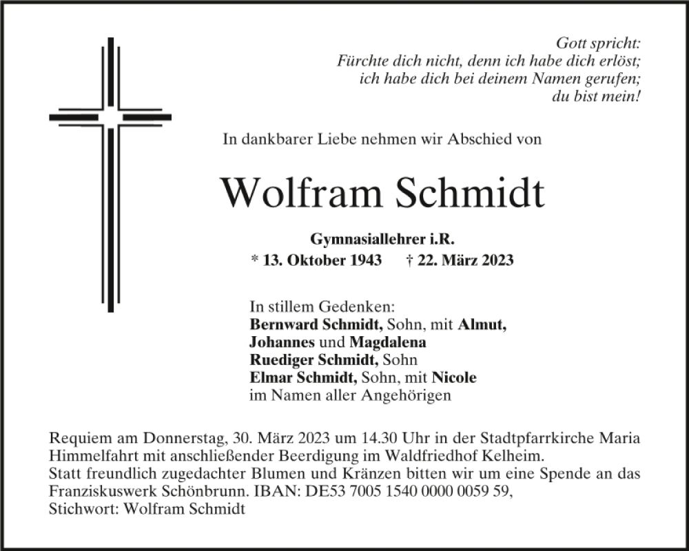 Herr Wolfram Schmidt (13.10.1943 - 22.3.2023)