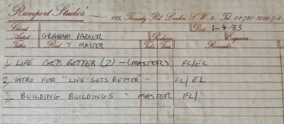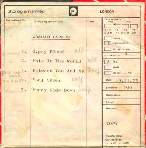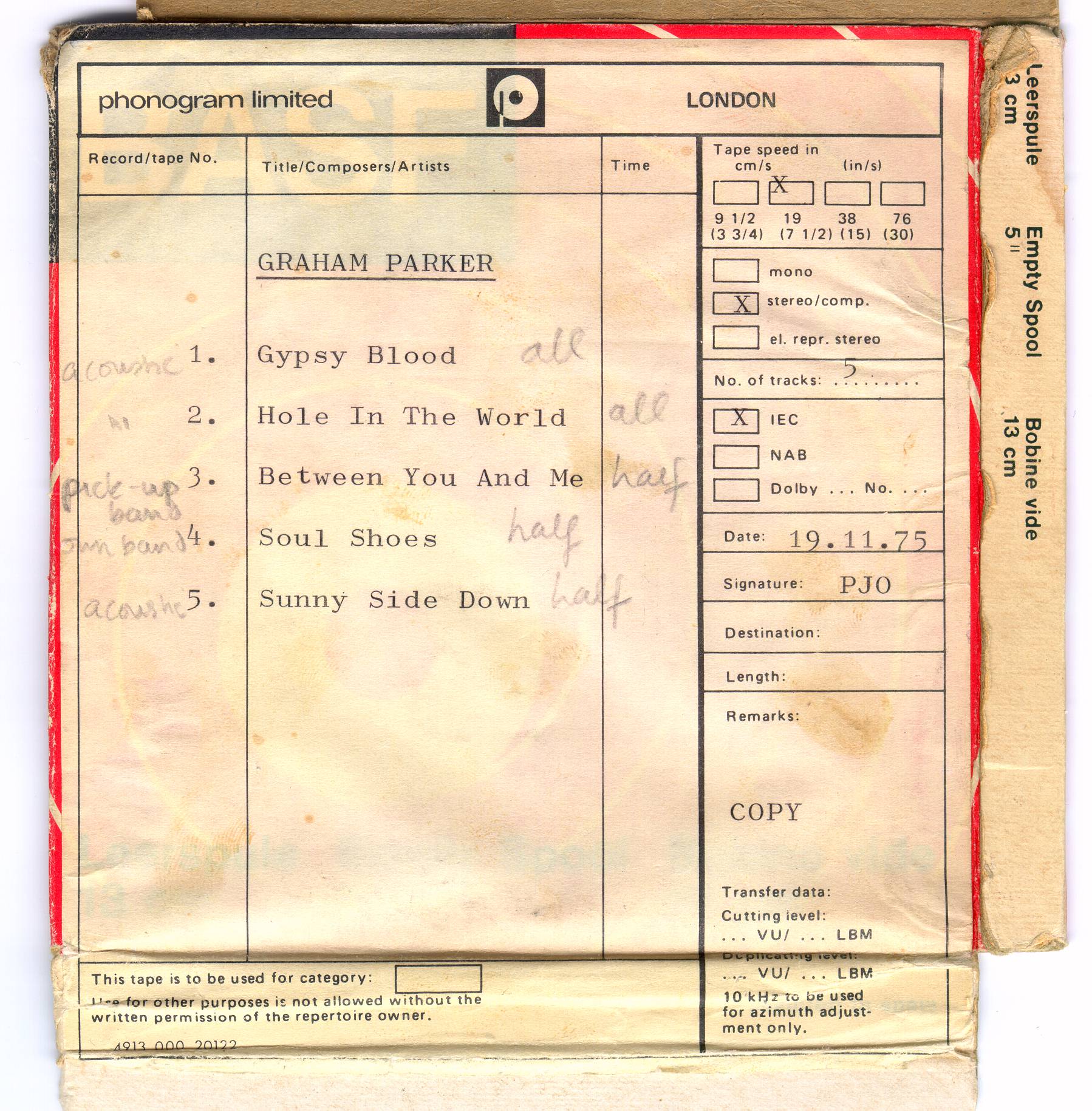 session, see above. On this tape one can still hear GP counting in the numbers, those intros