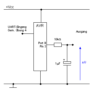 Die Funktionalität soll dieselbe sein wie bei Übung 5. Allerdings wollen wir diesmal das Analogsignal mittels Pulsweitenmodulation erzeugen und mit einem RC-Glied filtern.